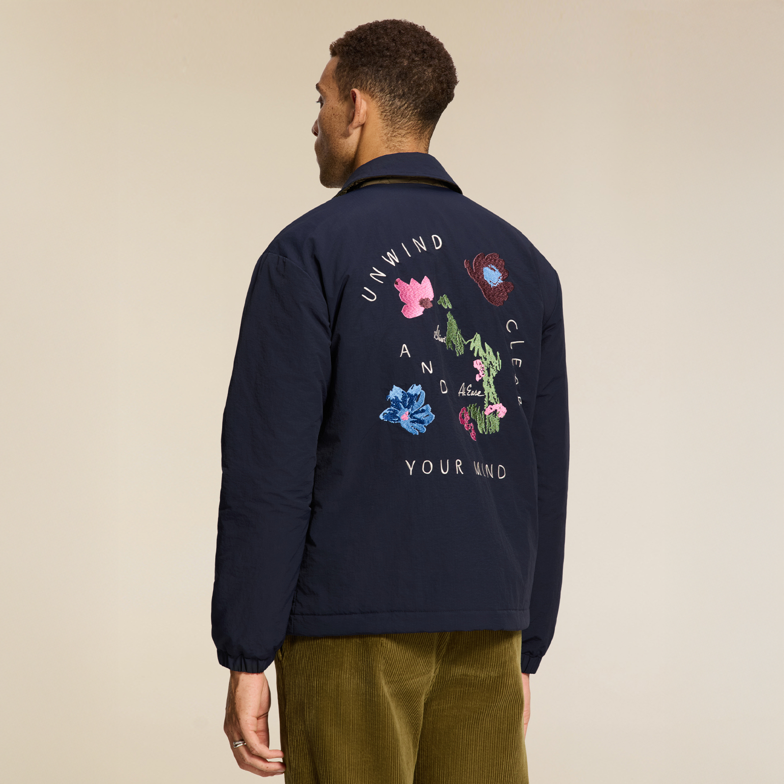 De collectie haalt zijn inspiratie uit het buitenleven. Prints gebaseerd op quiltpatronen en kleurrijke bloemenvelden geven elk stuk karakter. De worker jacket met jacquard geweven bloemenpatroon steelt de show, terwijl gebrushte checked shirts opvallen in de kleuren van de natuur. Voor de kou stapel je lagen knitwear, T-shirts, overshirts en shearling jacks. Flannel overshirts met bijpassende jogger pants vormen het uniform van het buitenleven. Comfort meets avontuur - versterkt door artwork tees en hoodies met bold, speelse graphics.