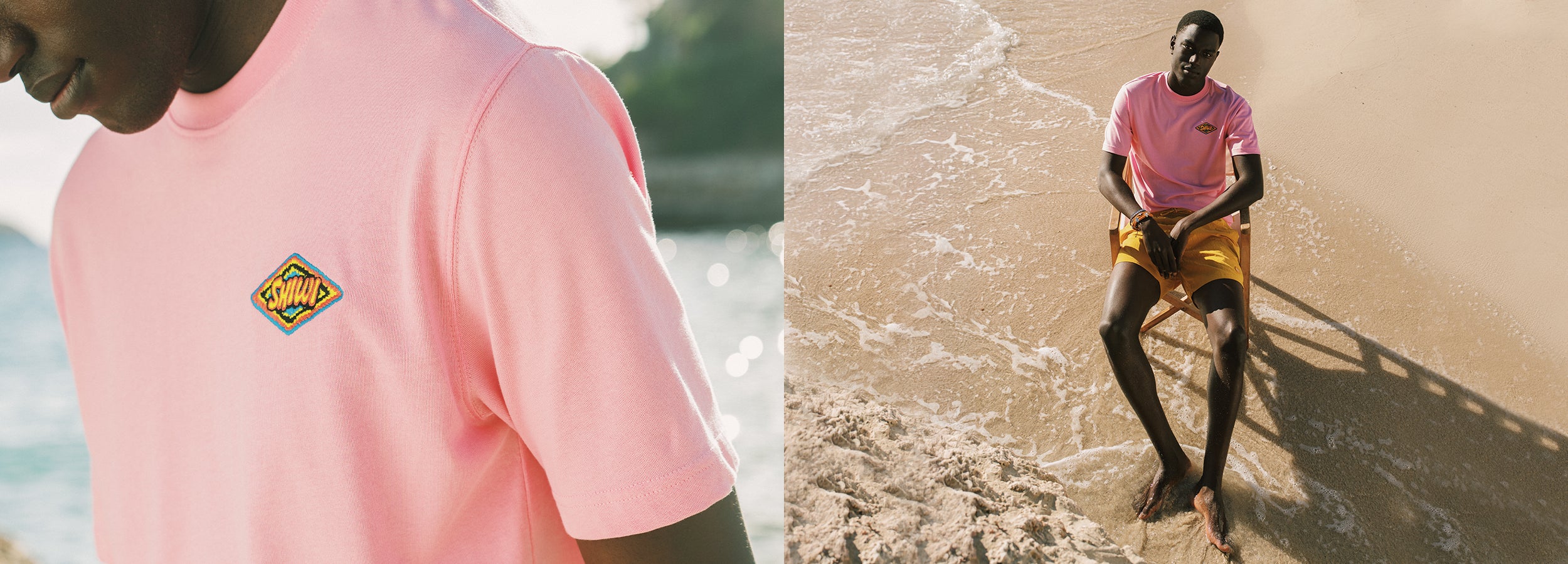 On Shiwi Island’s coastal paradise, corals and sea life became the muses. They come to life in multi-coloured prints and artworks, creating a blend of vibrant allovers calmed by sun-faded hues. New placements in prints give a modern twist to beach gear. Confident text prints capture the fun of a day by the sea, block-print inspired graphics celebrate life on the shoreline.